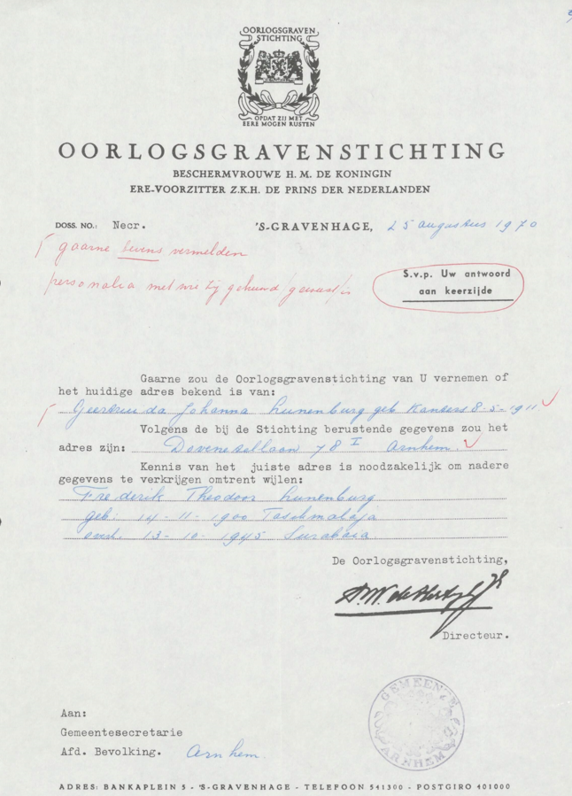 Eerst gehuwd geweest te Amsterdam, 19 september 1946 met BERNARDUS PANNEMAN; zoon