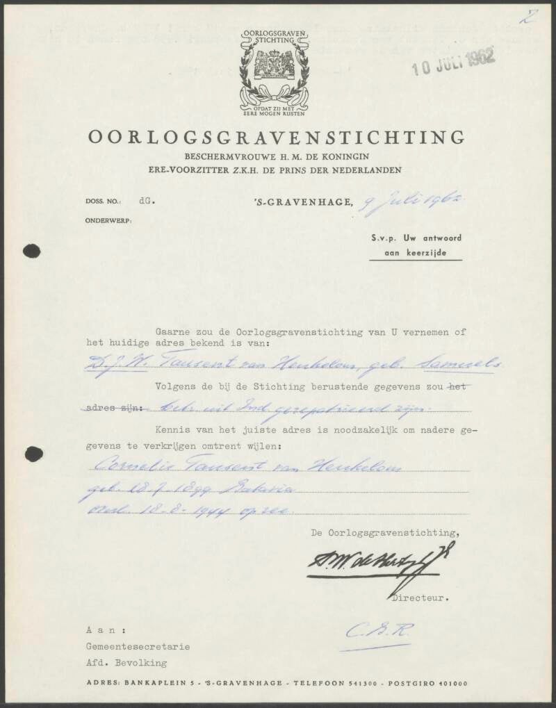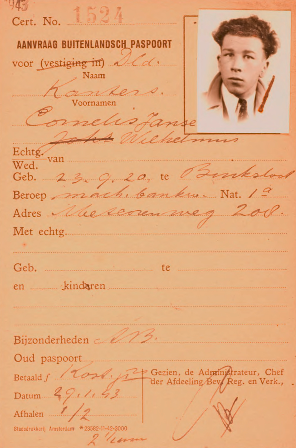 1 Centraal Bureau voor Genealogie, Persoonskaart, ´s-Gravenhage, 1939-1994, Kanters, Bernardus Cornelis Willem