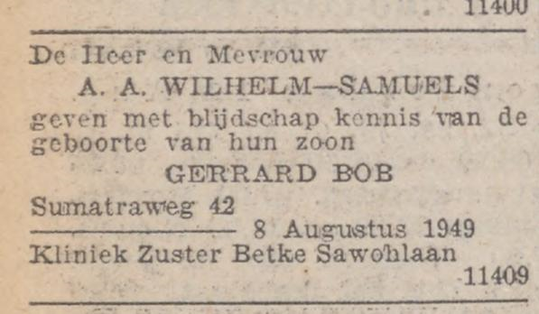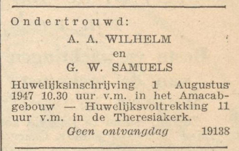 Gehuwd te Amsterdam, 8 mei 1947 met WILHELMINA CELIE; dochter van Christiaan Celie