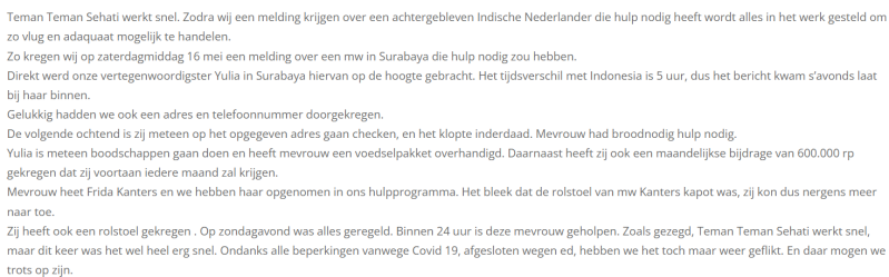 Artikel en afbeeldingen: Artikel over Frida Kanters op de website van de hulp- en liefdadigheidsorganisatie "Teman Teman Sehati", 24 mei 2020 (2).